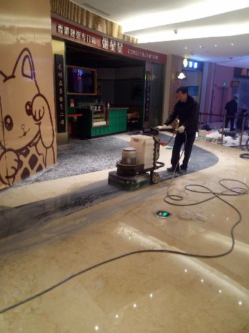 4.酒店、KTV地板清洗、打蠟、拋光。如PVC 地板、復(fù)合地板、大理石、花崗巖、水磨石等。