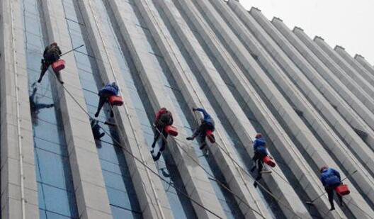 我們可以看得出來,其實清洗外墻是一件優(yōu)點危險的工作,但是如果大家施工的時候一定要注意,不要大意,因為清洗外墻是有點危險的。如果有心臟病恐高癥之類的就不要清洗外墻了!